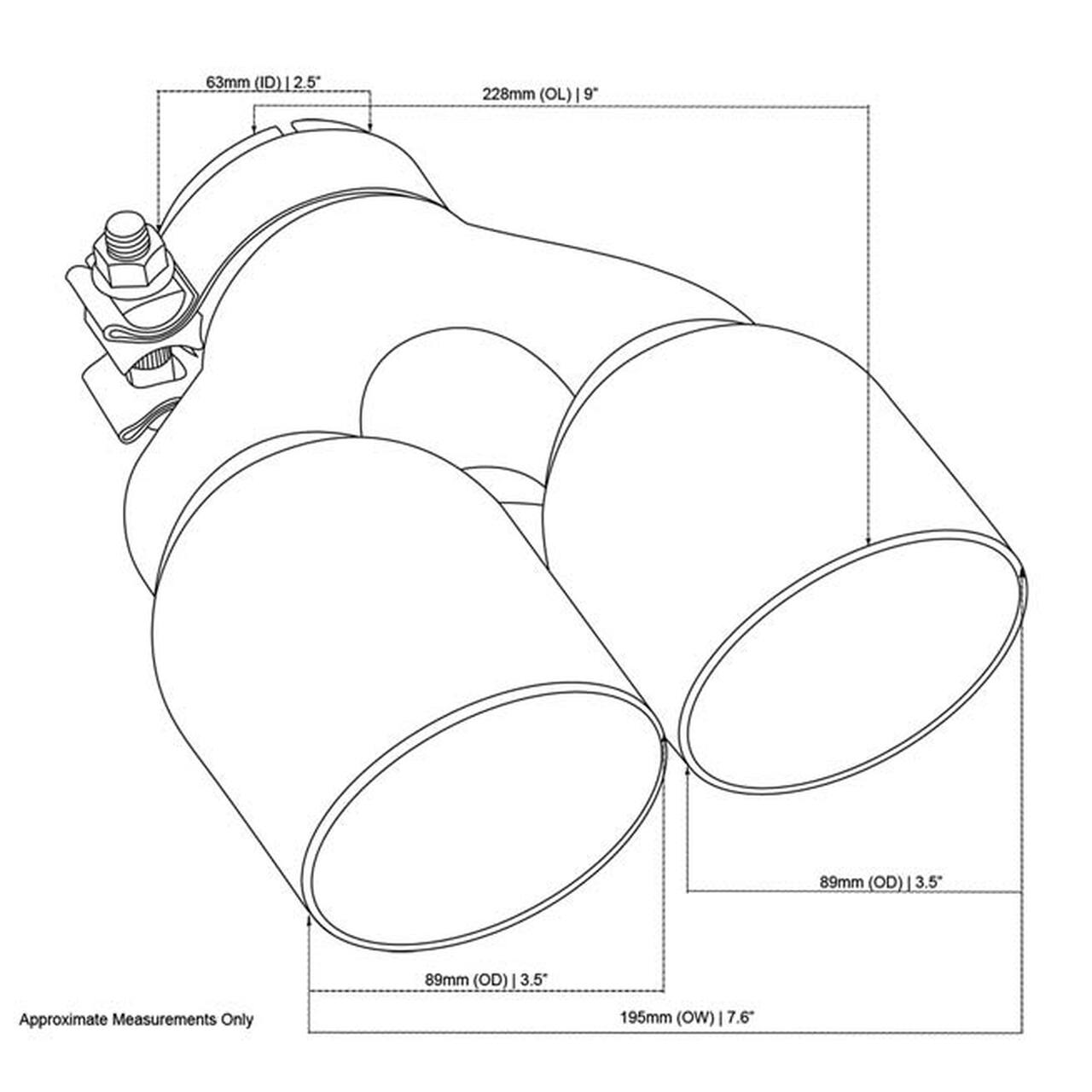 Exhaust Tip - 2.5 Inch In - Dual 3.5" Out - 9" Long RHS (Y-Piece - Inner Cone - Stainless Steel)